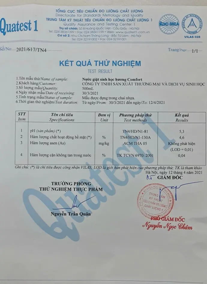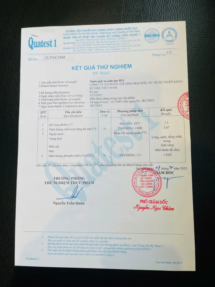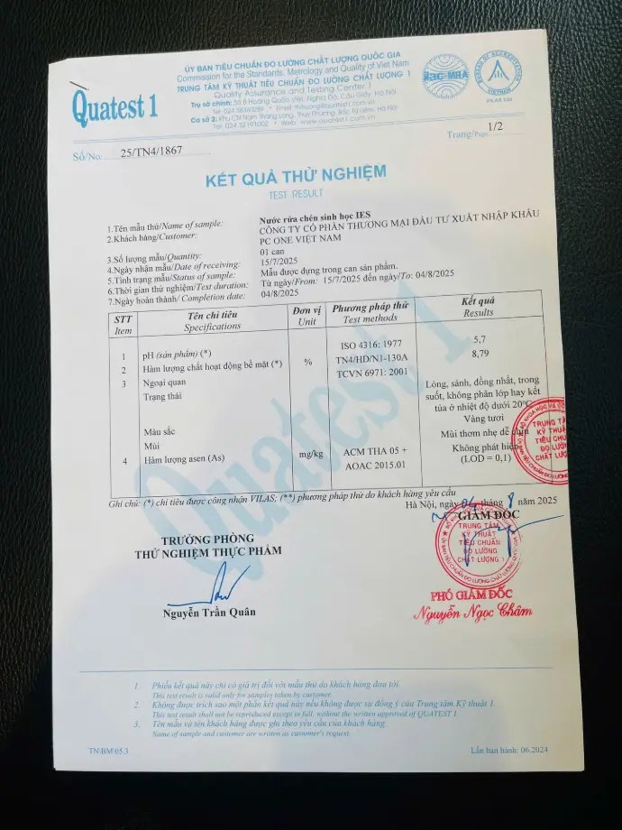 CÔNG BỐ NƯỚC RỬA RAU QUẢ MINCLEAR
